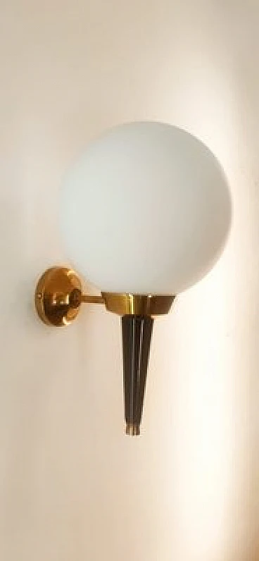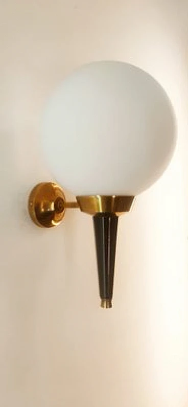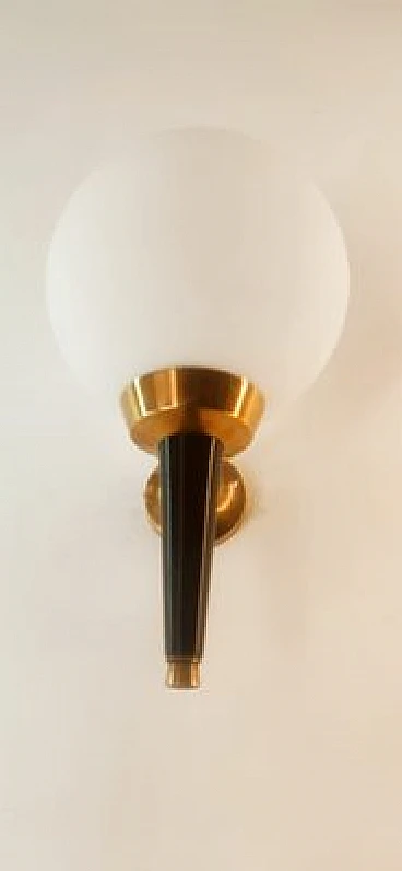 Applique in vetro, ottone e metallo nero di Stilnovo, anni '70