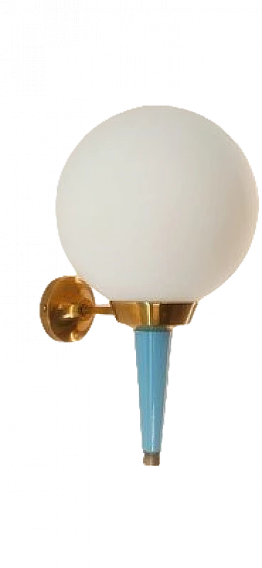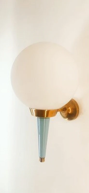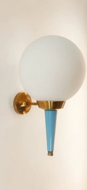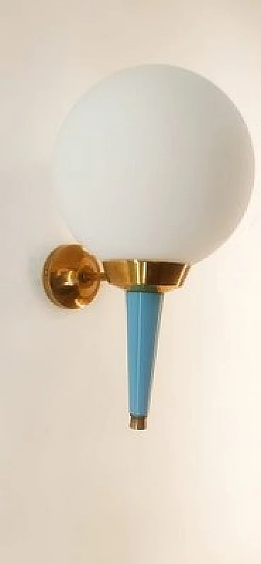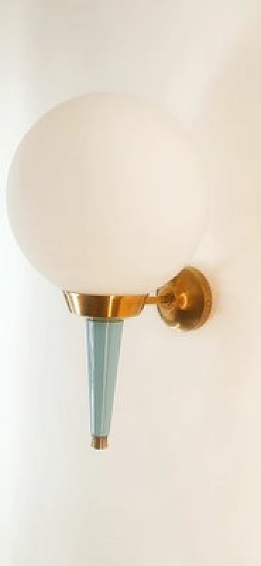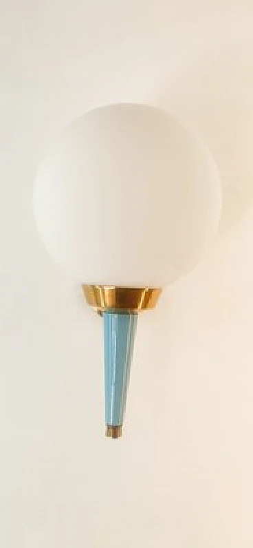 Applique in vetro, ottone e metallo azzurro di Stilnovo, anni '70