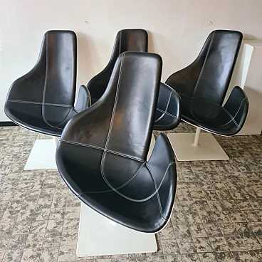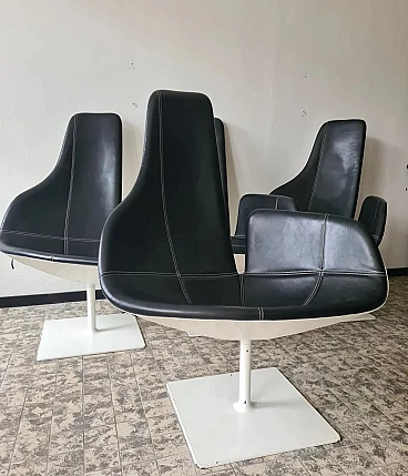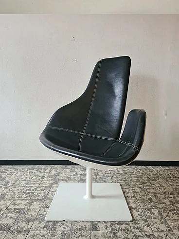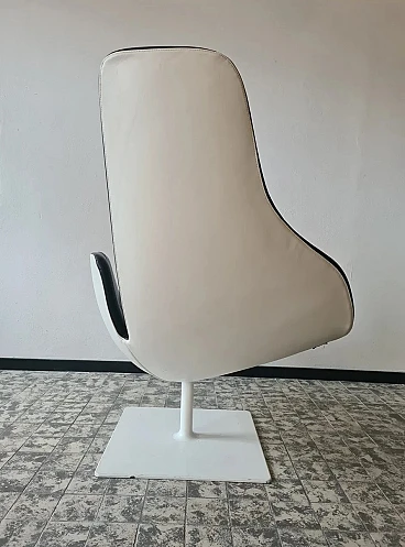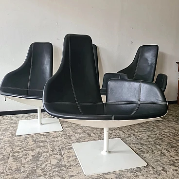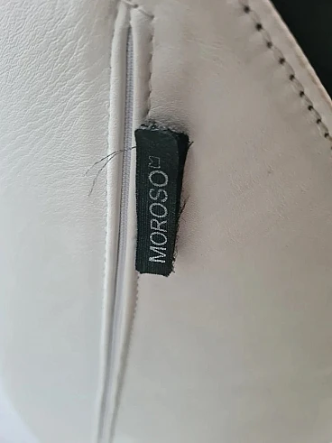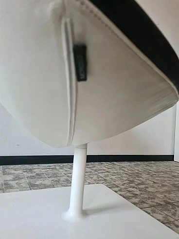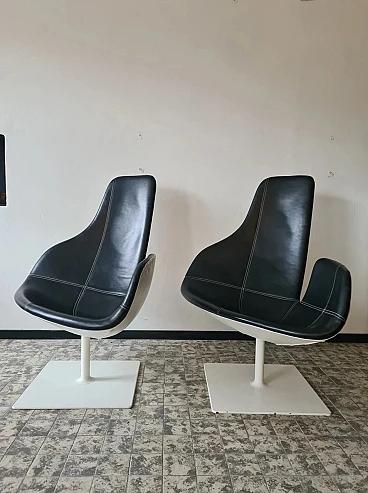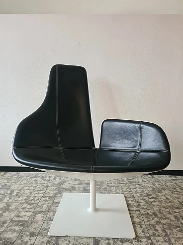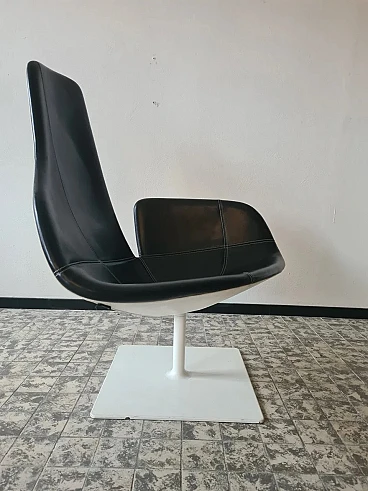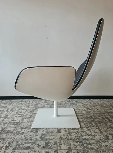 Poltrona Fjord di Patricia Urquiola per Moroso. Ispirata dai magnifici fiordi norvegesi, Urquiola disegna per Moroso Fjord, un magnifico sistema di sedute dal design eclettico e contemporaneo. La versione qui proposta è una poltrona in Total Body Leather, girevole e imbottita in poliuretano espanso schiumato a freddo ignifugo con struttura interna in acciaio. Fjord è sostenuta da una base quadrata in metallo bianco ed è interamente rivestita in morbida pelle, bianca all'esterno e nera all'interno con sistema a trapunta a contrasto con cuciture bianche a vista. Oltre a essere molto bella, è anche comodissima e dona un comfort senza eguali. Quattro pezzi disponibili (prezzo per singola poltrona).