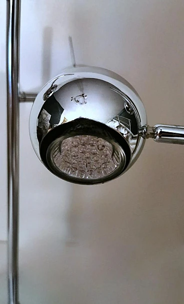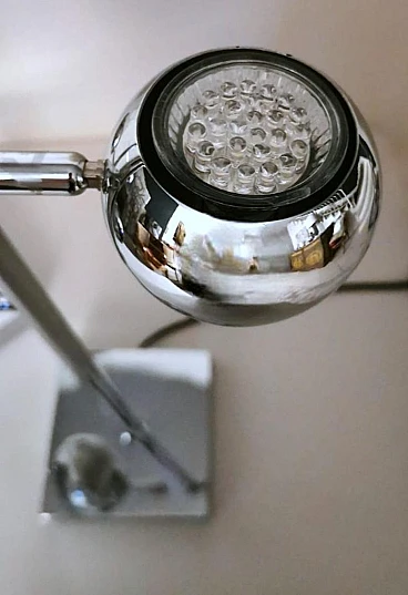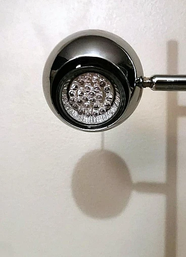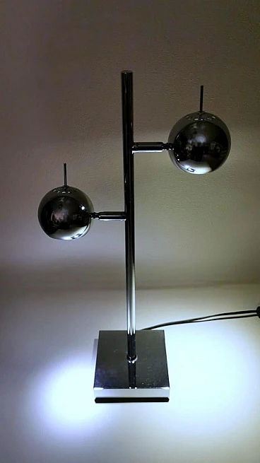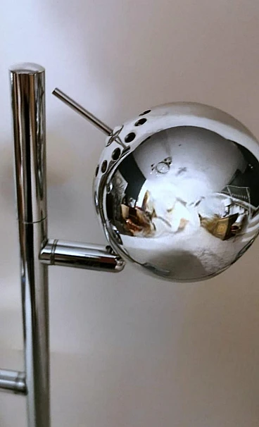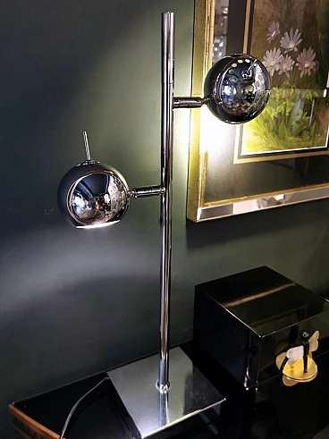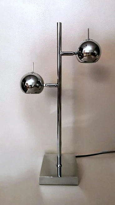 Ti consigliamo di leggere l'intera descrizione, in quanto cerchiamo di fornirti informazioni tecniche e storiche dettagliate per garantire l'autenticità dei nostri oggetti. Iconica lampada da tavolo in metallo cromato; è composta da un'asta su cui sono posizionati, ad altezze diverse, due cilindri alla cui sommità si trovano due sfere metalliche che contengono al loro interno il punto luce. Le sfere ruotano di 360 gradi in tutte le direzioni, permettendo così un'eccellente illuminazione personalizzata. La base quadrata è solida e funzionale. La lampada presenta un design elegante e minimalista, realizzato con materiali di altissima qualità e rifinito con una finitura cromata. La lampada fu creata tra il 1975 e il 1980 in un laboratorio di Monza (Lombardia). Gli artigiani si ispirarono allo stile del designer Goffredo Reggiani con il desiderio di ideare un oggetto dalle dimensioni ridotte favorendo l'idea di praticità e linearità, e diedero alla lampada un'originalità senza tempo, seguendo la moda di quegli anni; sappiamo per certo che l'architetto Reggiani si avvalse di artigiani lombardi di riconosciuta abilità per la costruzione dei suoi oggetti, che utilizzavano materiali molto raffinati anche perché gli oggetti erano destinati principalmente agli appartamenti della ricca borghesia milanese; la nostra lampada, con le sue caratteristiche di qualità, accuratezza e finitura, è stata sicuramente realizzata da quei Maestri artigiani. Il prolifico e importante designer italiano Goffredo Reggiani (1929-2004) fondò l'azienda nella città di Monza, in Italia, nel 1957. Ha ha progettato personalmente la maggior parte delle lampade, utilizzava spesso metallo cromato e acciaio, dando alle sue creazioni un aspetto scandinavo. Le lampade cromate di Goffredo Reggiani sono caratterizzate da linee pulite e curve fluide e offrono una luce luminosa e diffusa; le lampade di Reggiani sono diventate oggetti di culto per gli appassionati di design e i collezionisti, grazie alla loro bellezza estetica e alla qualità artigianale. Lo stile della lampada è lo "Space Age", una corrente estetica nata agli albori dell'era spaziale, comunemente attribuita al lancio dello Sputnik nell'ottobre del 1957. Il design dell'era spaziale ha catturato l'ottimismo e la fiducia della società nella tecnologia negli anni '50 e '60. La forma sferica predomina in questo stile per la maggior parte delle decorazioni e dell'illuminazione dove, spesso, se diverse sfere sono collegate, ricordano esplicitamente l'atomo. Il design esplode in una varietà di stili e movimenti, dando spazio alla rotondità, alla libertà di forma e movimento, alla leggerezza e alla semplicità. Le lampade di quel periodo sono caratterizzate da volumi essenziali che richiamano forme geometriche che rompono definitivamente con la tradizione razionalista. I materiali sono freddi, lucidi e metallici. La nostra lampada dal design semplice ed essenziale nasconde un'anima ingegnosa, innovativa e pratica, pronta a diffondere la luce secondo le nostre esigenze; si inserirà facilmente in qualsiasi contesto della casa grazie alla sua eleganza senza tempo. La lampada è in buone condizioni. L'impianto elettrico è funzionante ma il cablaggio è europeo, la compatibilità della tensione in altri stati deve essere sempre verificata da un elettricista prima dell'uso. Misura larghezza 27 cm, profondità 14 cm, altezza 52 cm. Per tutte le nostre spedizioni utilizziamo materiali di imballaggio speciali (casse di legno su misura, polistirolo, ecc.) per garantire la massima protezione e sicurezza degli articoli.