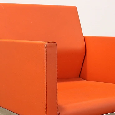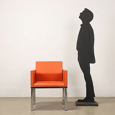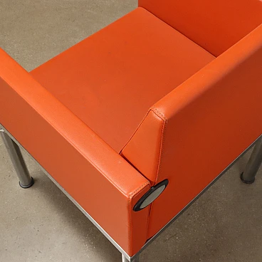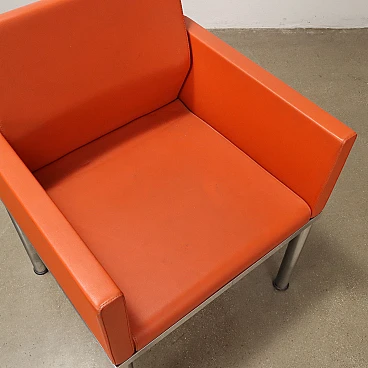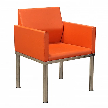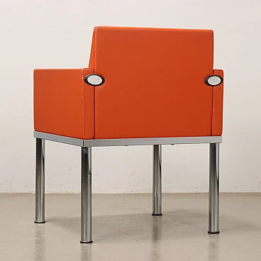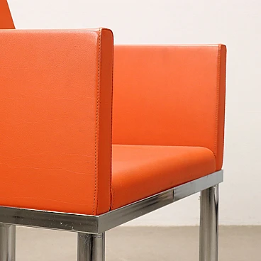 Poltrona in pelle arancione e struttura in metallo cromato, anni '90
