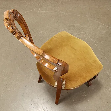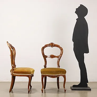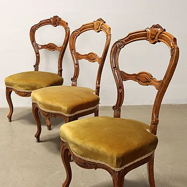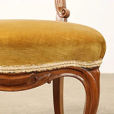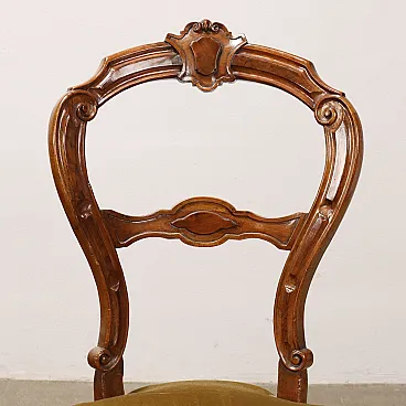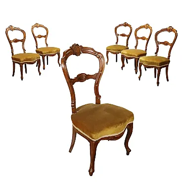 6 Sedie in noce intagliato e sedute imbottite, '800