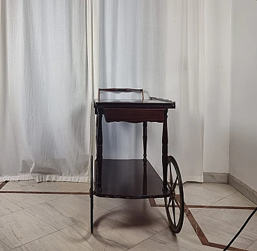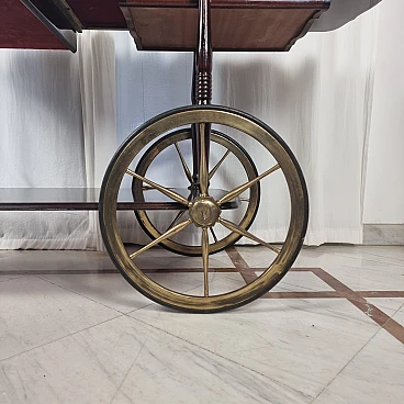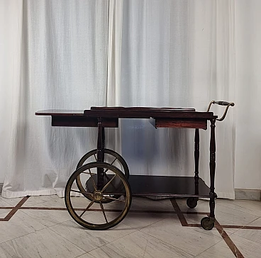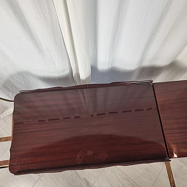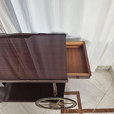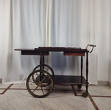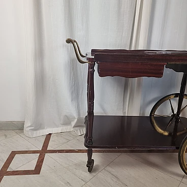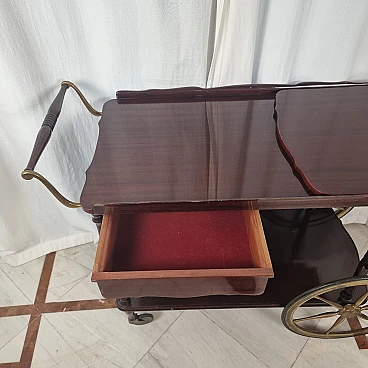 Carrello bar in mogano e ottone con piano allungabile, anni '50