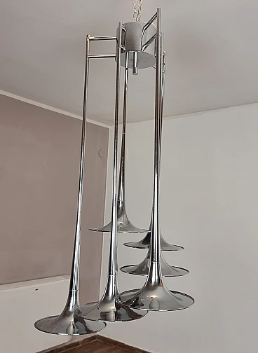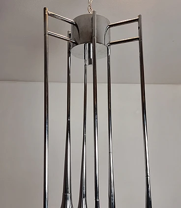 Lampadario in acciaio cromato di Goffredo Reggiani, anni '70