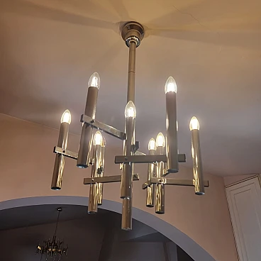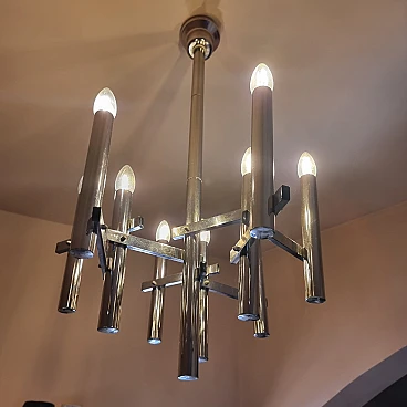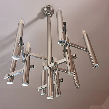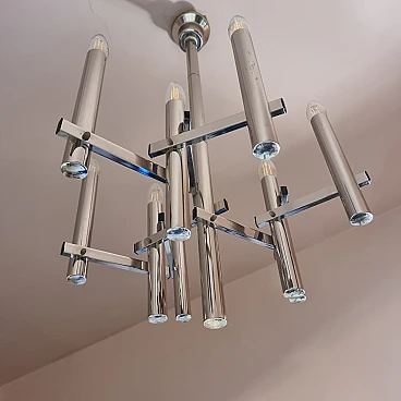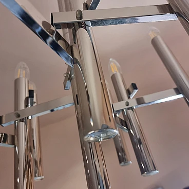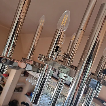 Lampadario acciaio cromato lucido di Gaetano Sciolari, anni '70