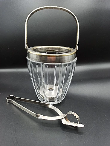 Secchiello ghiaccio in vetro e metallo, anni '60