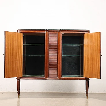 Mobile bar impiallicciato in legno esotico e marmo verde, anni '50