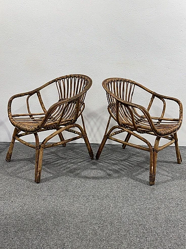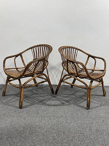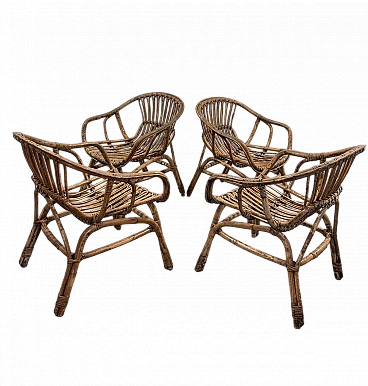 4 Poltrone da giardino in rattan di Vittorio Bonacina, anni '60