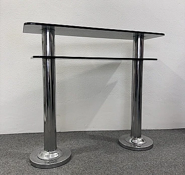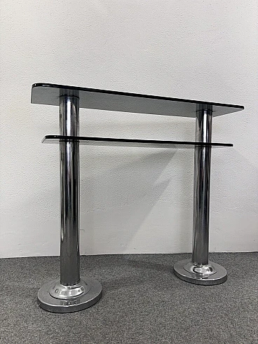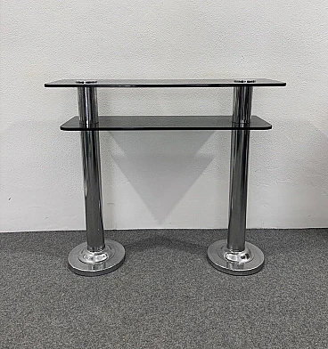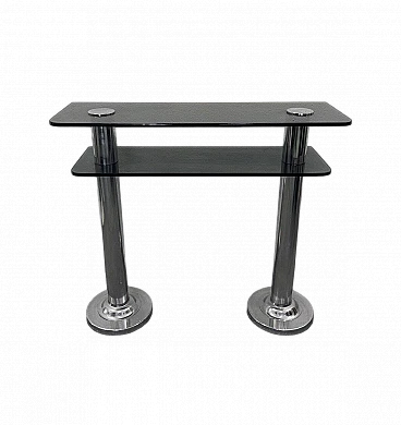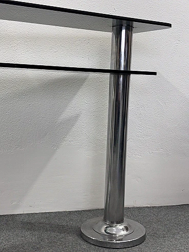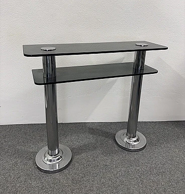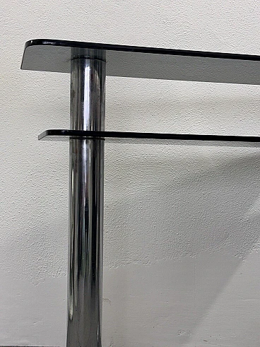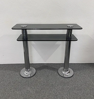 Consolle in metallo cromato e vetro fumé, anni '80