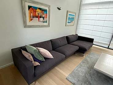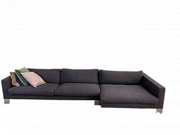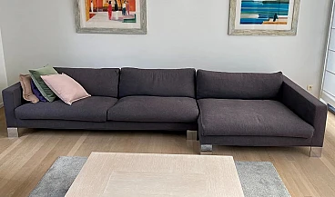 Raffinato divano angolare modello Pollock, opera del grande e innovativo designer Rodolfo Dordoni. Ottime condizioni, minimi segni d'uso. Leggera scoloritura superficiale, per il resto in ottime condizioni. L'originale base in metallo cromato dal design inconfondibile e le proporzioni perfettamente armonizzate conferiscono al divano un aspetto che può essere definito classico e moderno. Il rivestimento è in morbido tessuto di lana e cotone goffrato a doppia trama di altissima qualità, firmato Minotti. Un tessuto di grande raffinatezza tattile. Struttura in metallo con cinghie elastiche intrecciate ad alto contenuto di gomma. Schienali e braccioli in multistrato. Struttura in poliuretano espanso ad alta densità a quote differenziate. I braccioli e gli schienali hanno un rivestimento traspirante in fibra trapuntata termosaldata accoppiata a un tessuto di cotone anallergico. Acquistato per 11500 euro. Larghezza 355 cm; profondità 120 cm; altezza 58 cm; altezza seduta 40 cm.