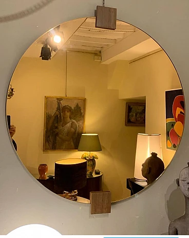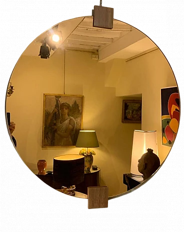 Specchio in vetro rosa bronzato con tasselli in noce, anni '60