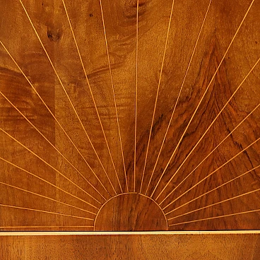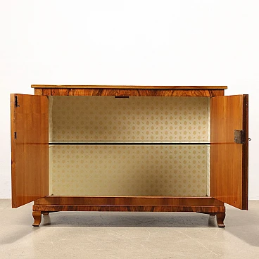 Credenza in noce rigatino e filettature in acero con piedini mossi