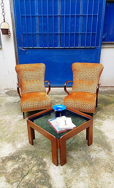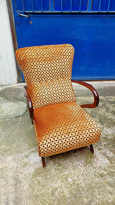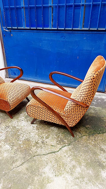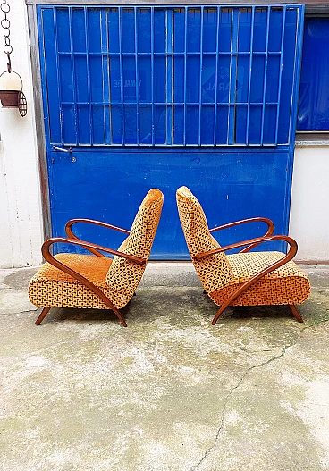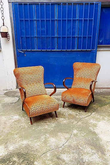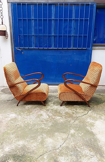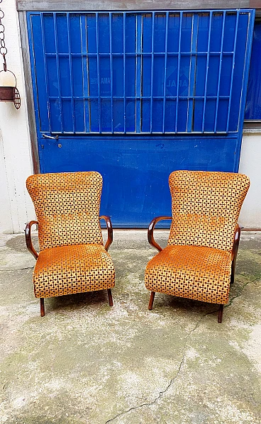 Coppia di poltrone Art Déco in faggio curvato e velluto, anni '40