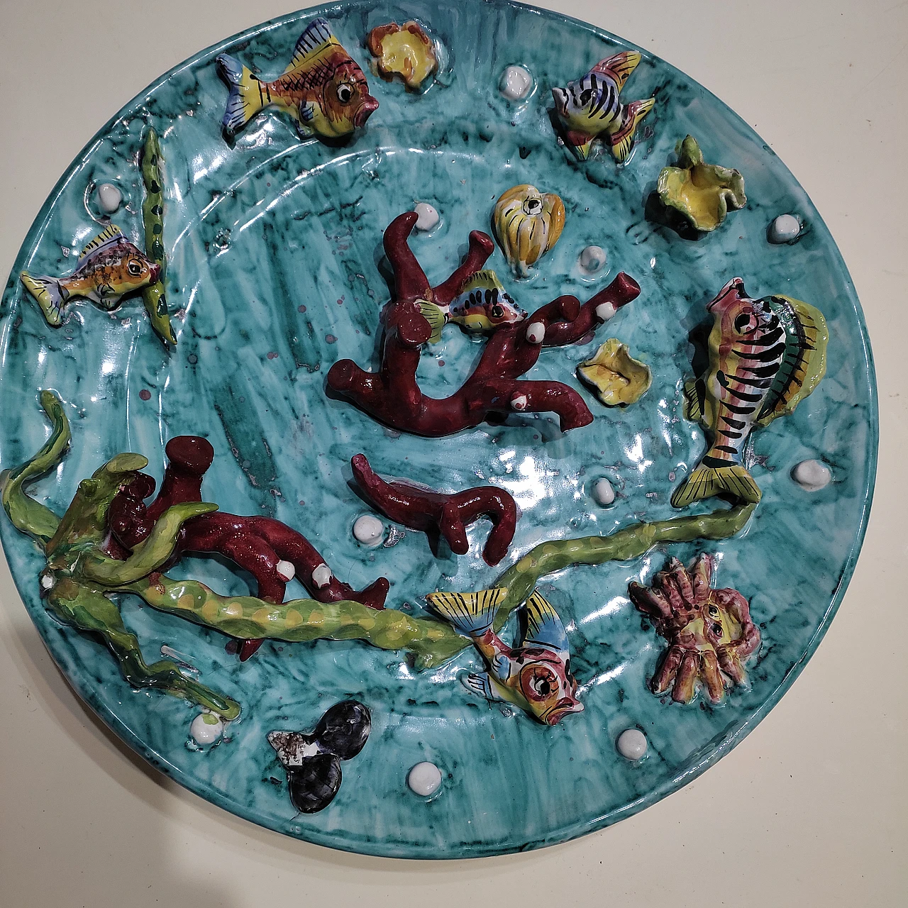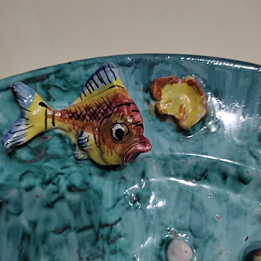 Piatto in ceramica di Vietri con pesci ed alghe in rilievo