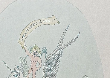Litografia firmata e numerata a matita in basso sotto il soggetto. Esemplare XIII/XXXXII. Timbro a secco in basso a destra: in corsivo NN. Ottimo stato di conservazione, colori accesi, leggero difetto alla carta nell’angolo inferiore sinistro.
