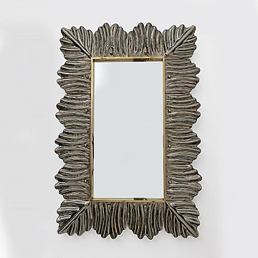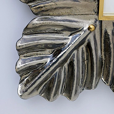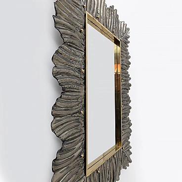 Specchio da parete in ottone con foglie di vetro di Murano, anni '90