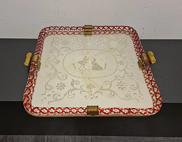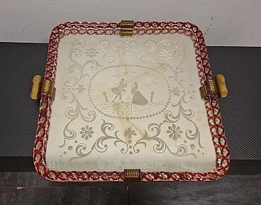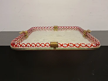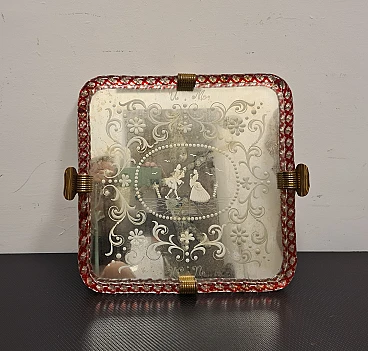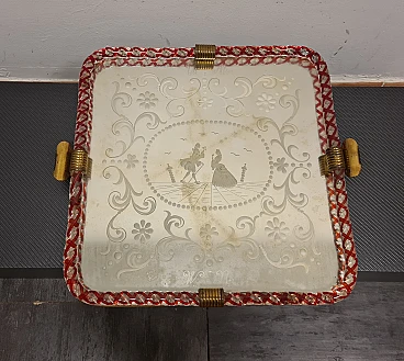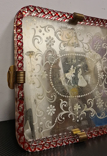 Vassoio in vetro a specchio inciso di Ercole Barovier, anni '50