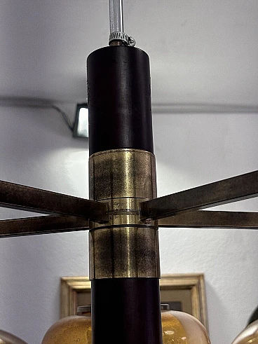 Lampadario Space Age in legno, ottone e vetro di Murano, anni '70 9
