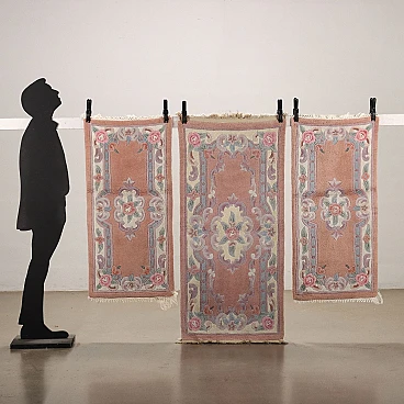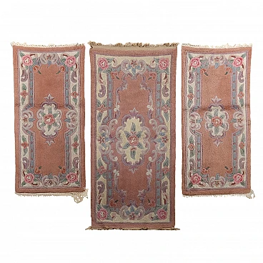 3 Tappetti Pechino in cotone e lana con motivi floreali
