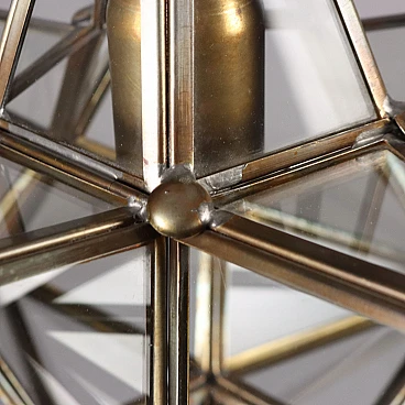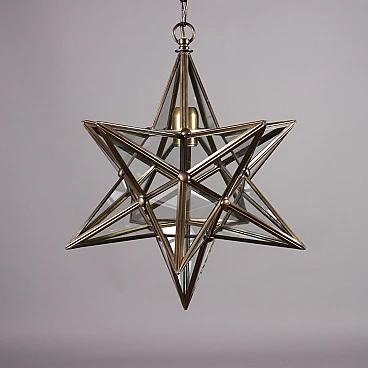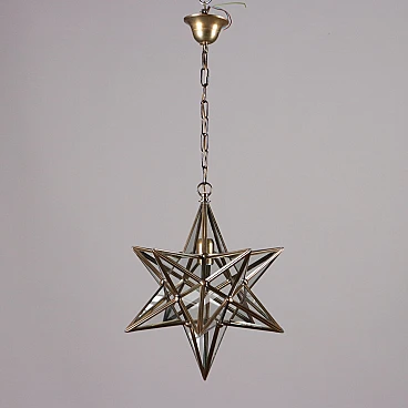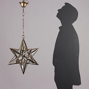Lampadario a forma di stella in ottone e vetro, anni '60