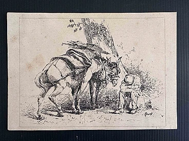 L'Uomo in Riposo è una stampa litografica realizzata alla fine del XIX secolo da Stefano Bruzzi (1835-1911)Firmata sulla piastraBuone condizioni.
