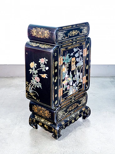 Credenza cinese in legno laccato, dipinto e intarsiato 1