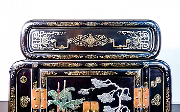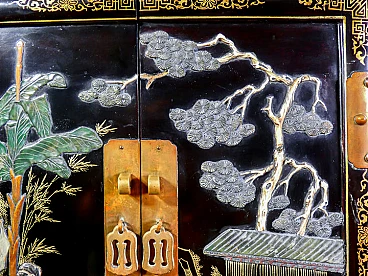 Credenza cinese in legno laccato, dipinto e intarsiato 2
