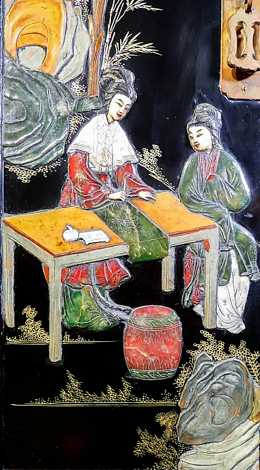 Credenza cinese in legno laccato, dipinto e intarsiato 9