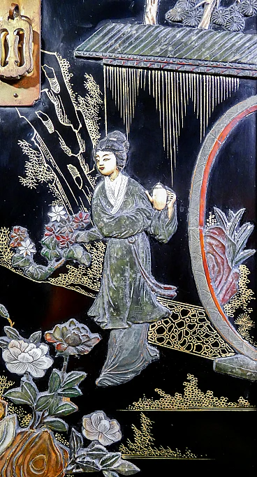 Credenza cinese in legno laccato, dipinto e intarsiato 4