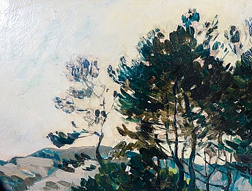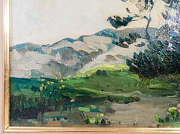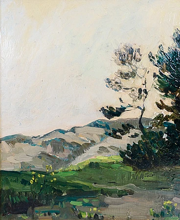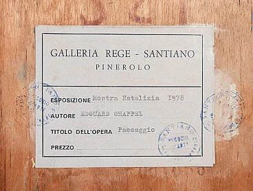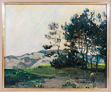 Dipinto a olio su tavola di Edward Chappel raffigurante un paesaggio, fine '800 - inizio '900. Firmato. Edward Chappel, noto anche come Edouard Chappel, era un pittore di origine belga-britannica, nato il 24 ottobre 1859 ad Anversa, in Belgio, e scomparso nel 1946 a Cagnes-sur-Mer, in Francia. Ha studiato presso l'Accademia delle Belle Arti di Anversa con Charles Verlat e ha continuato la sua formazione a Parigi all'Académie Julian. La sua arte rifletteva l'influenza delle tradizioni artistiche fiamminghe e olandesi ma, con il passare del tempo, Chappel ha iniziato a sperimentare nuovi stili. Dopo il trasferimento a Londra nel 1890, Chappel si è affermato come un rinomato pittore di paesaggi e nature morte. I suoi lavori sono stati apprezzati per la loro capacità di evocare atmosfere particolari, catturando l'essenza delle scene naturali britanniche con un tocco distintivo. Durante la sua carriera, ha esposto le sue opere in varie mostre che hanno ottenuto riconoscimenti in tutto il Regno Unito e all'estero. Negli ultimi anni della sua vita Chappel si è trasferito nel sud della Francia, dove ha adottato uno stile più impressionista, influenzato dalla luminosità e dai colori vivaci della regione. Le sue opere di questo periodo riflettono un interesse crescente per la rappresentazione impressionistica del paesaggio. Le opere di Chappel sono conservate in importanti collezioni museali, inclusi il Musée d'Orsay a Parigi e i Musei Reali delle Belle Arti del Belgio, testimoniando il suo impatto duraturo nel campo dell'arte. Misure senza cornice: 21 x 26 cm. Ottime condizioni, come è possibile constatare dalle foto allegate.