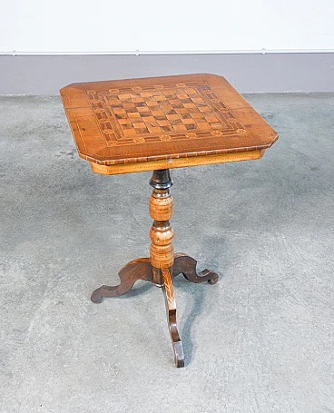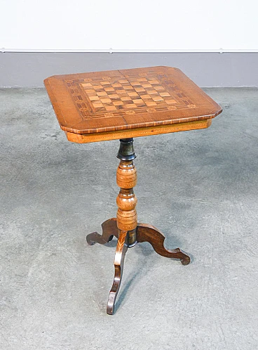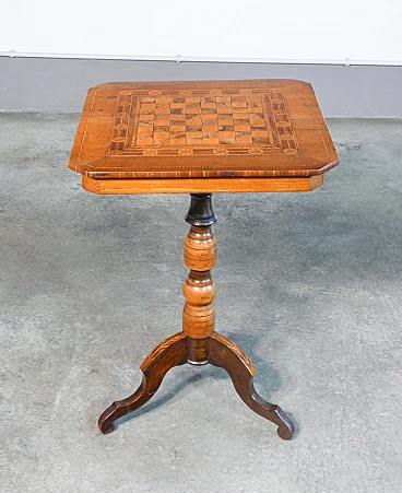 Tavolino Luigi Filippo con piano intarsiato a scacchiera, '800 1