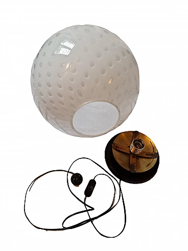Lampada da tavolo sferica in vetro di Murano e legno nero, anni '50