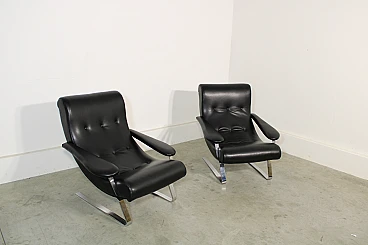 Coppia di Poltrone in pelle di G. Bonzani per Tecnosalotto, anni '70