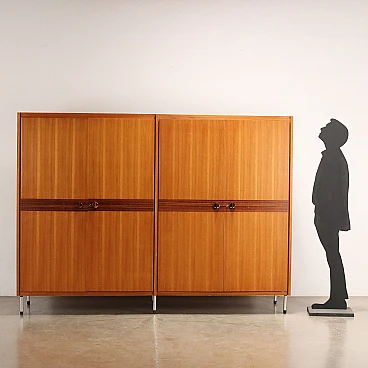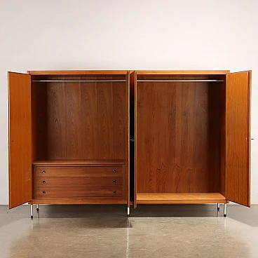 Armadio a 4 ante in mogano e teak con gambe in metallo, anni '60