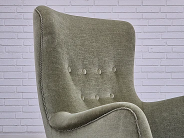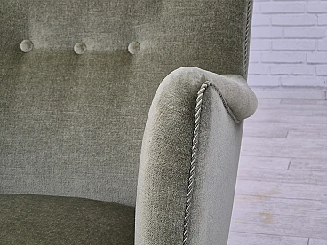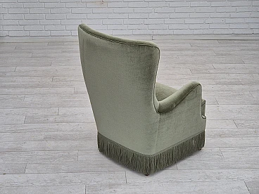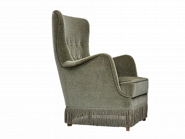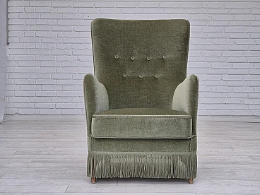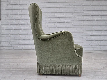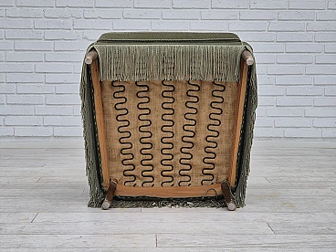 Poltrona danese con frange in velluto verde e faggio, anni '70