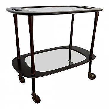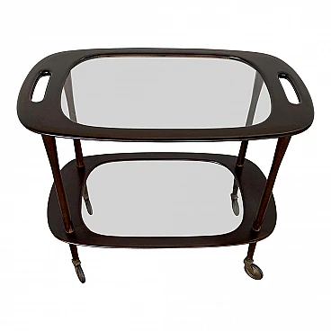 Carrello bar in mogano e vetro attribuito a Cesare Lacca, anni '50