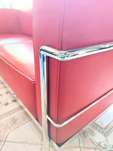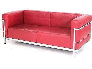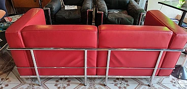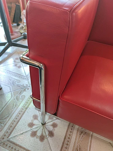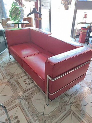 Divano in pelle rossa in stile LC3 di Le Corbusier, anni '80