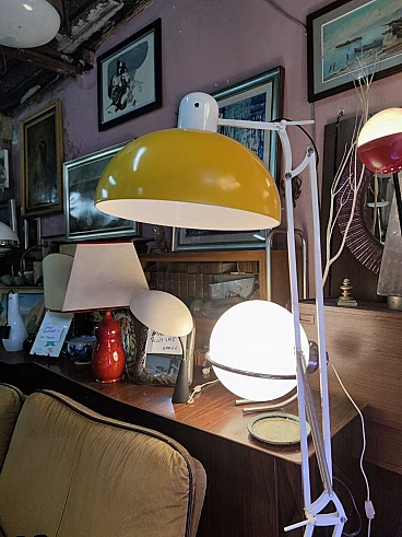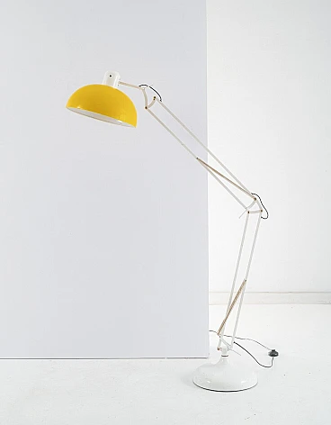 Lampada da terra in metallo verniciato bianco e giallo, anni '70