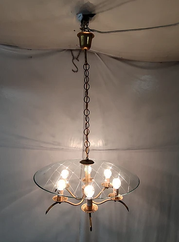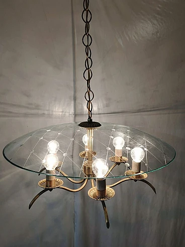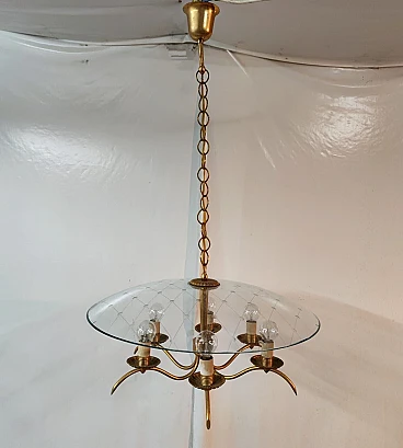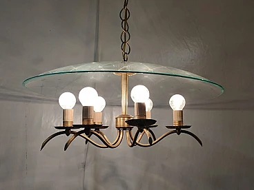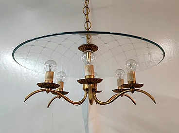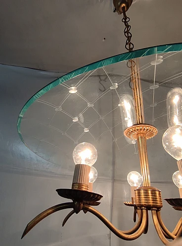 Lampadario in ottone e cristallo di Chiesa per Fontana Arte, anni '40