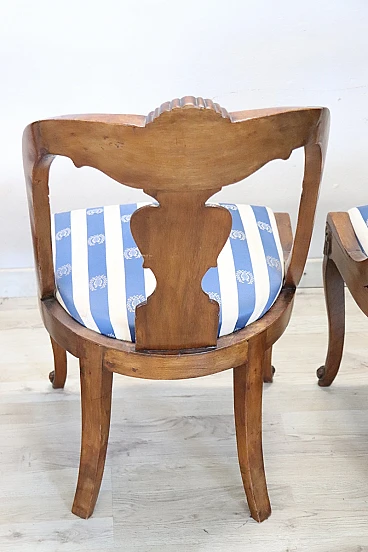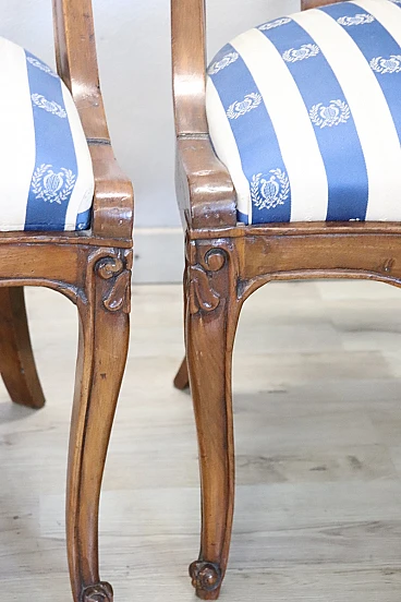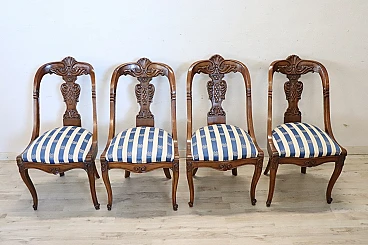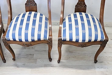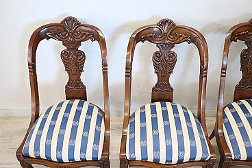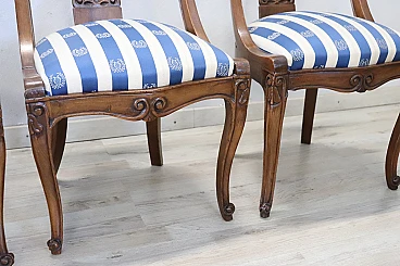 4 Sedie in noce massello con tessuto a righe, '800