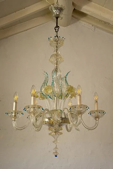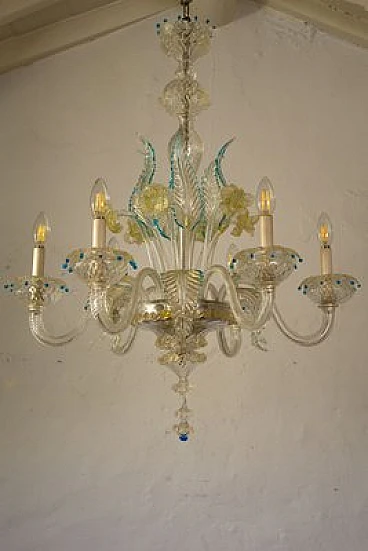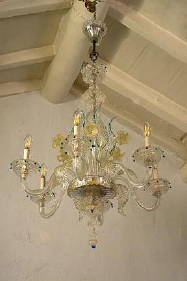 Lampadario in vetro di Murano soffiato a forma di bouquet, anni '40