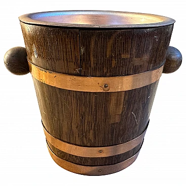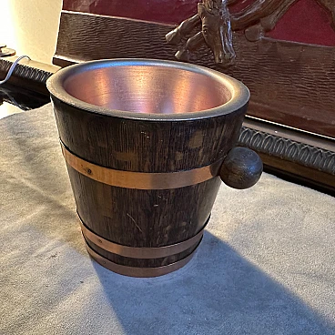 Secchiello per il ghiaccio in rame e quercia, anni '50