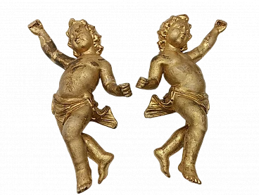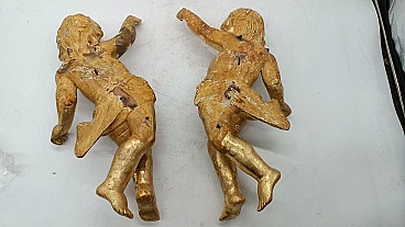Coppia di sculture di angeli in legno dorato, seconda metà del '700