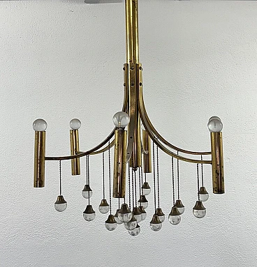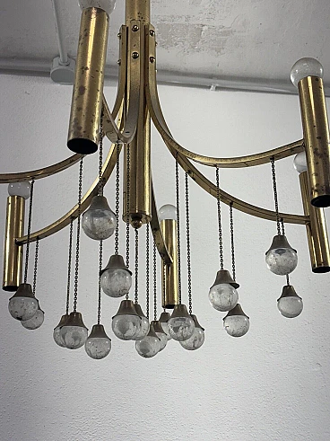 Lampadario a sei luci in ottone e cristallo di Gaetano Sciolari