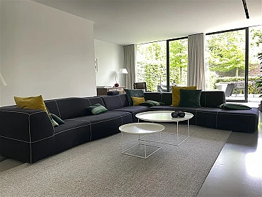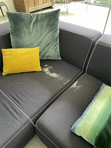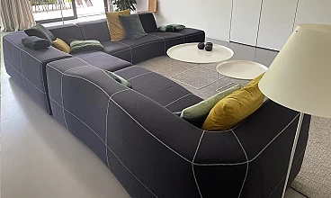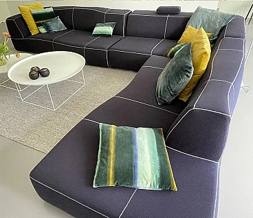 Divano Bend angolare In tessuto Kvadrat blu-viola di Patricia Urquiola per B&B Italia. Causa vendita casa delle vacanze, vendiamo in nostro grande divano modulare Bend in morbido tessuto Kvadrat in blu-viola con cuciture bianche composto da tre parti: due elementi angolari e un elemento terminale. Disegnato nel 2010 dalla design ed architetto spagnola Patricia Urquiola. Nella disposizione delle foto: circa 3,80 m x 3,20 m, ben 7,00 mq di superficie di divano. Il rivestimento è in tessuto Kvadrat cat A Premium ed è sfoderabile (velcro, vedi foto). Il divano ha 5 anni e, a parte i minimi segni di utilizzo locali, è in ottime condizioni. Il comfort di seduta è eccellente. Cuscini compatti e tessuto ben teso. Il divano viene fornito con tre cuscini dello stesso tessuto (1 di 50x60cm e 2 di 35x60cm). Il divano è a Nizza e sarà da far tornare a (Pomezia- Roma) su appuntamento. NB: il divano di difetti visibili ha solo la tappezzeria in due punti in 2 degli elementi angolari e presenta uno scolorimento locale sul retro dello stesso elemento angolare. Il rivestimento sfoderabile è ancora disponibile su ordinazione presso B&B Italia. Inoltre, il tessuto dei cuscini può essere utilizzato per riparare le due parti , danneggiate con pochissima spesa. Per il resto è ok, bellissimo. Acquistato 5 anni fa a 19.800 euro.