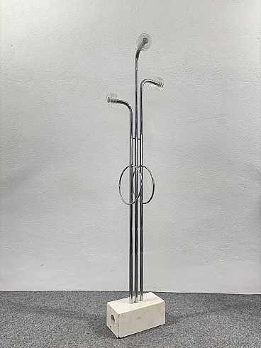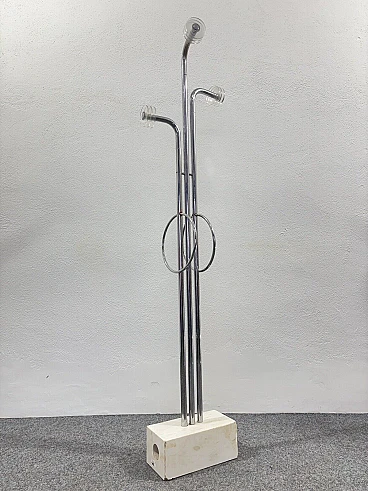 Appendiabiti da terra in acciaio, acrilico e marmo, anni '80