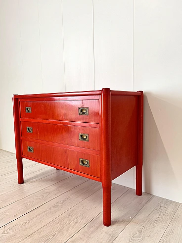 Cassettiera Carimate in legno rosso di Vico Magistretti, anni '60