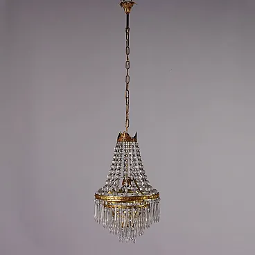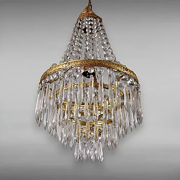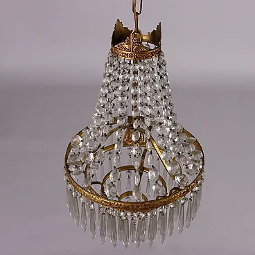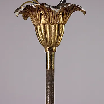 Lampadario a mongolfiera con elementi fitomorfi in lamierino dorato