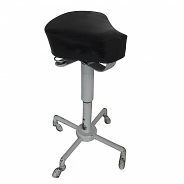 Sgabello regolabile con ruote e sella Giuliari, anni '50