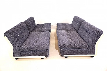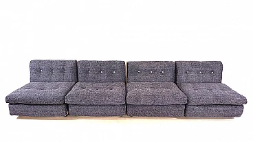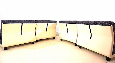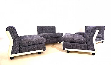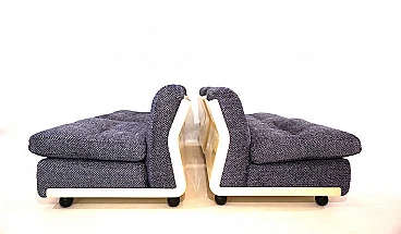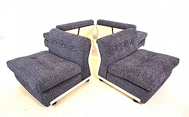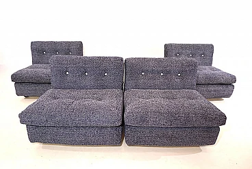Set di quattro poltrone Amanta di Mario Bellini per C&B Italia, anni '60. Rivestimento in fantastico e pesante tessuto bouclé blu cobalto e bianco, scocca leggera in fibra di vetro. Sono state recentemente imbottite e rivestite e offrono un comfort di seduta di prima classe. Il retro delle scocche presenta solo minimi segni del tempo ed è in ottime condizioni. Si tratta di un set Amanta di prima categoria in una combinazione di colori affascinante in tessuto di alta qualità. Possono essere usate singolarmente o unite in maniera diversa così da creare un divano a due, tre o quattro posti. L'azienda C&B Italia è stata fondata da Cesare Cassina e Piero Busnelli ed è stata completamente rilevata da Busnelli nel 1973; a quel tempo l'azienda è stata ribattezzata B&B Italia. La poltrona Amanta è stata disegnata da Mario Bellini per C&B Italia nel 1963 ed è uno dei suoi progetti più famosi. Altezza della seduta: 41 cm. Profondità della seduta: 48 cm.